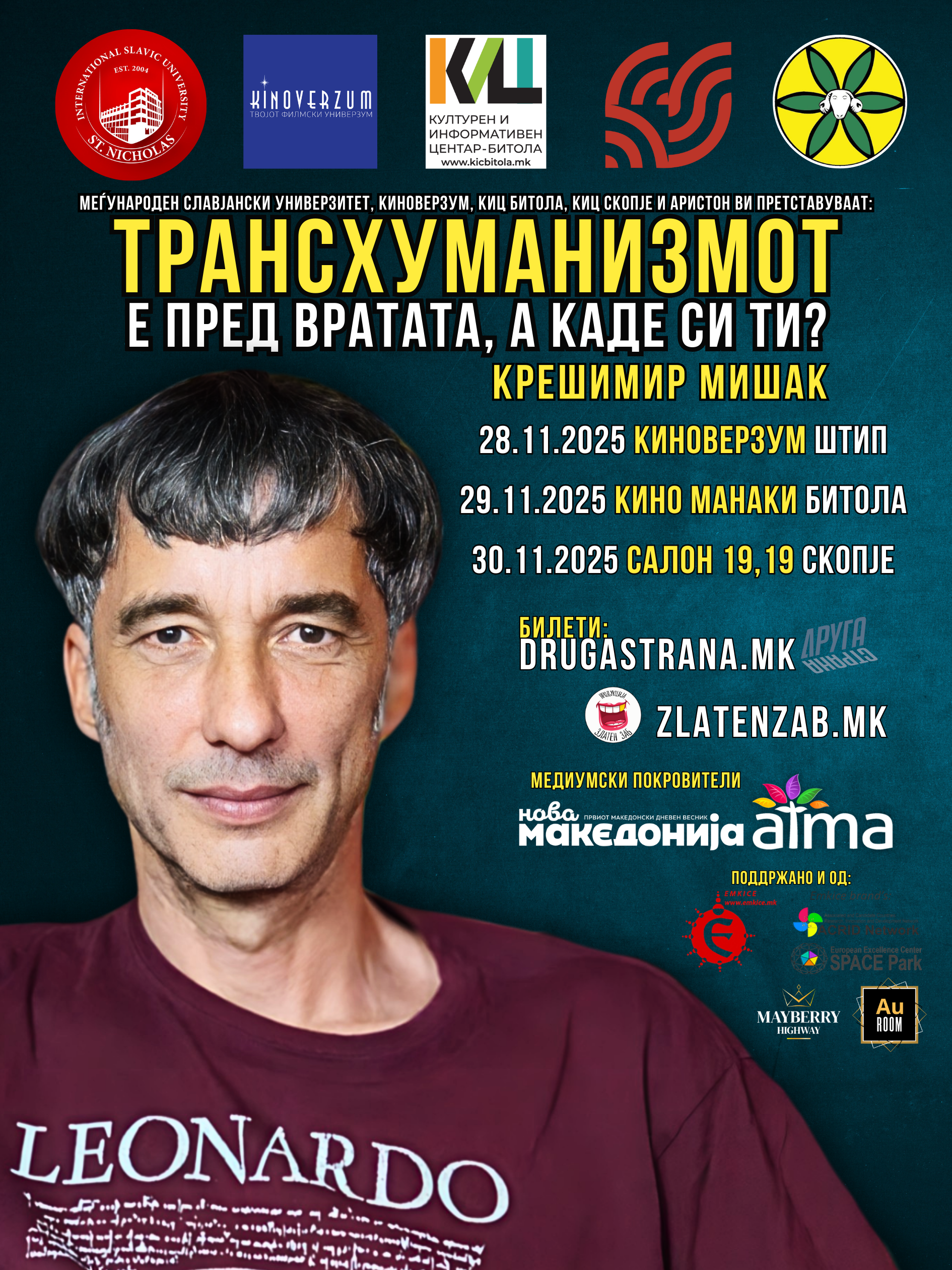 Не ја пропуштајте оваа ексклузивна можност да се запознаете со Крешимир Мишак и да слушнете повеќе за неговите истражувања и објавени книги. Ве очекуваме!