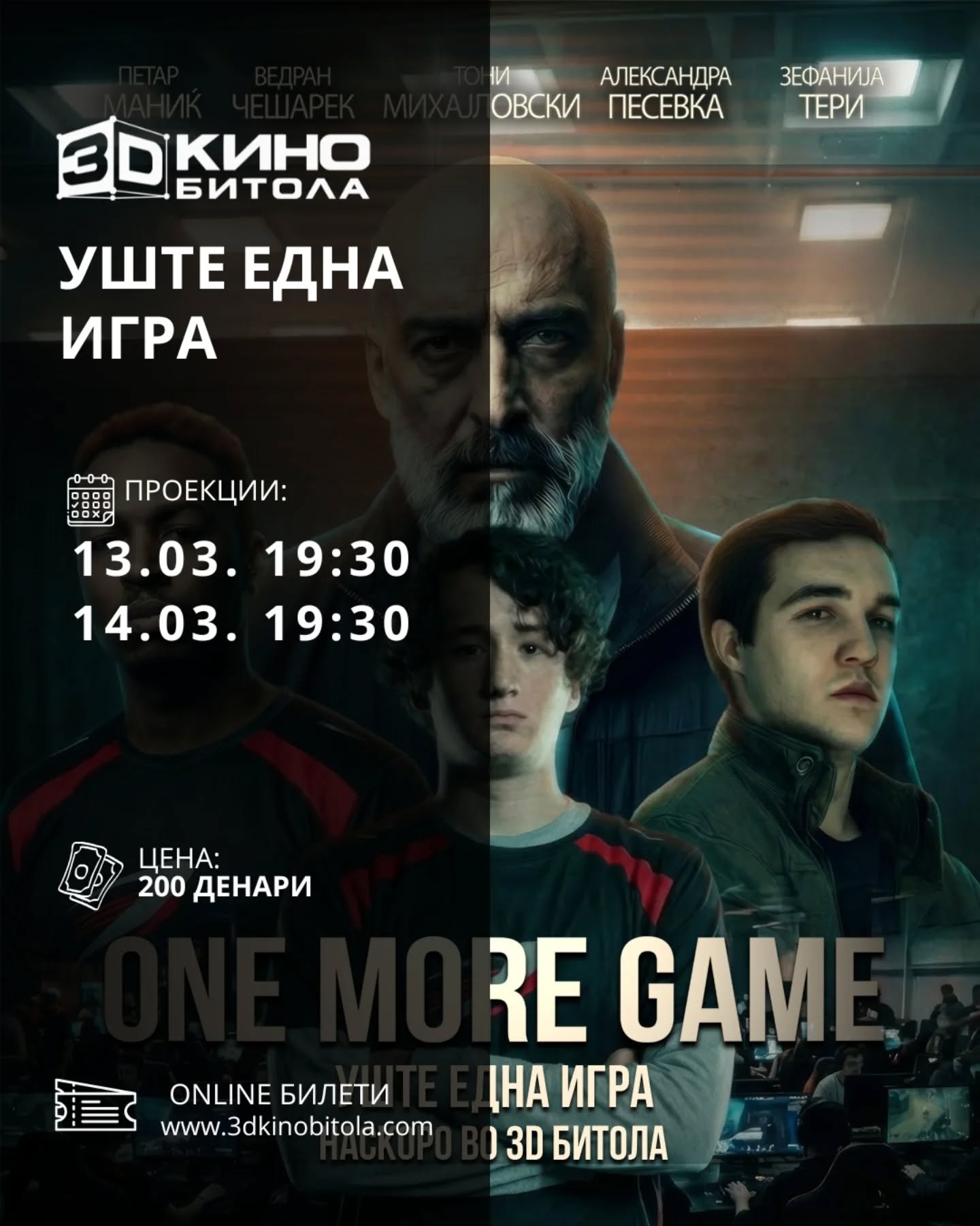 Актери: Toni Mihajlovski, Goce Andonov, Zephaniah Terry, Zaklina Stefkovska, Aleksandra Pesevska, Marija Jancevska, Marjan Naumov, Dalia Stoimenova, Jasmina Vasileva, Vedran Chesharek, Petar Manić