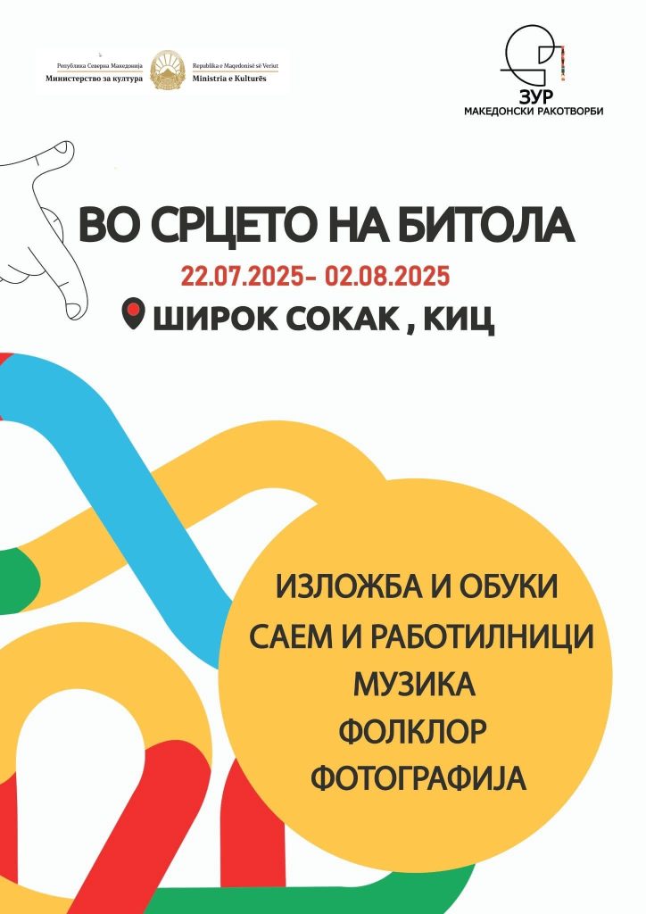ВРЕДНИ РАЦЕ И КРЕАТИВНОСТ „ВО СРЦЕТО НА БИТОЛА” Од 22 јули до 2 август 2025 година, Здружението на уметници ракотворци