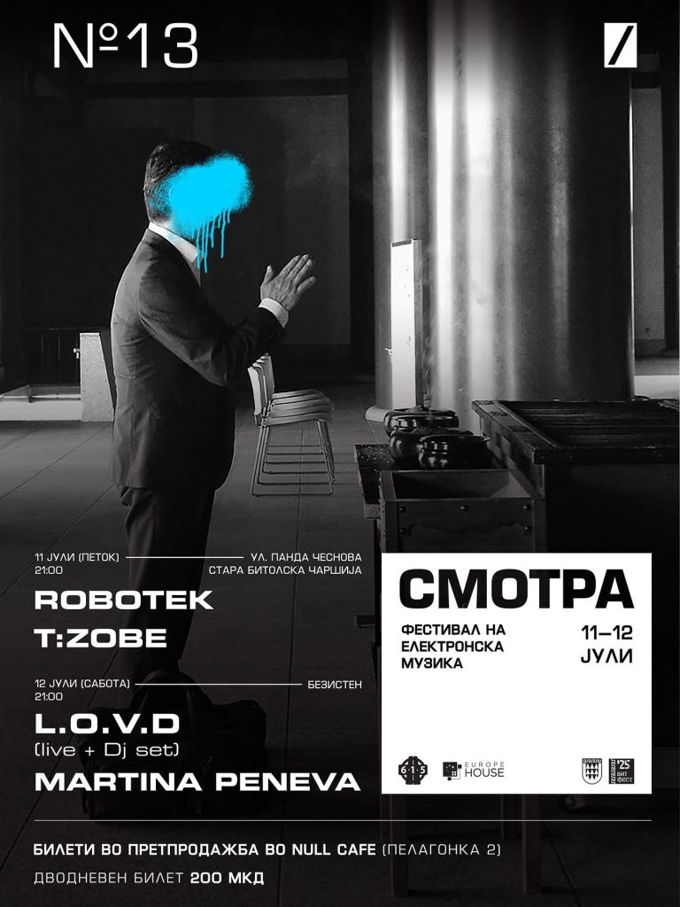 СМОТРА-Фестивал на електронска музика Петок 11 Јули/Стара битолска Чаршија/21:00 ч. Сабота 12 Јули/Безистен/21:00 ч. Идејата зад овој фестивал датира од