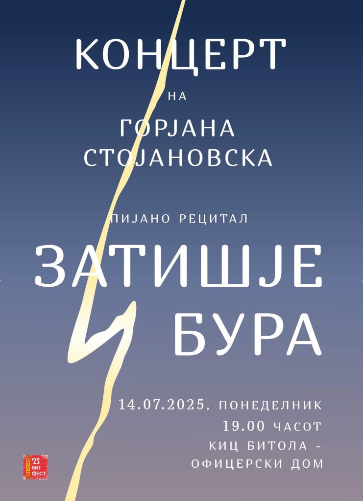 „Затишје и бура” – Пијано рециталКонцерт на Горjана Стоjановска Вечер посветена на тивките и бурните мигови што ги носи музиката,